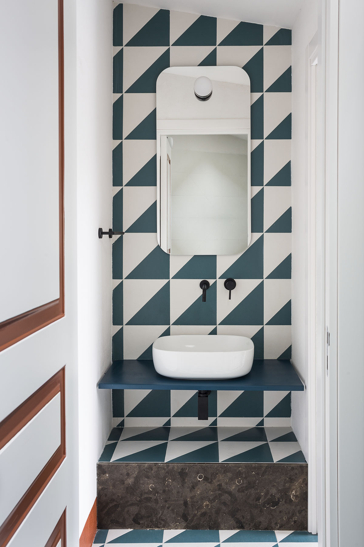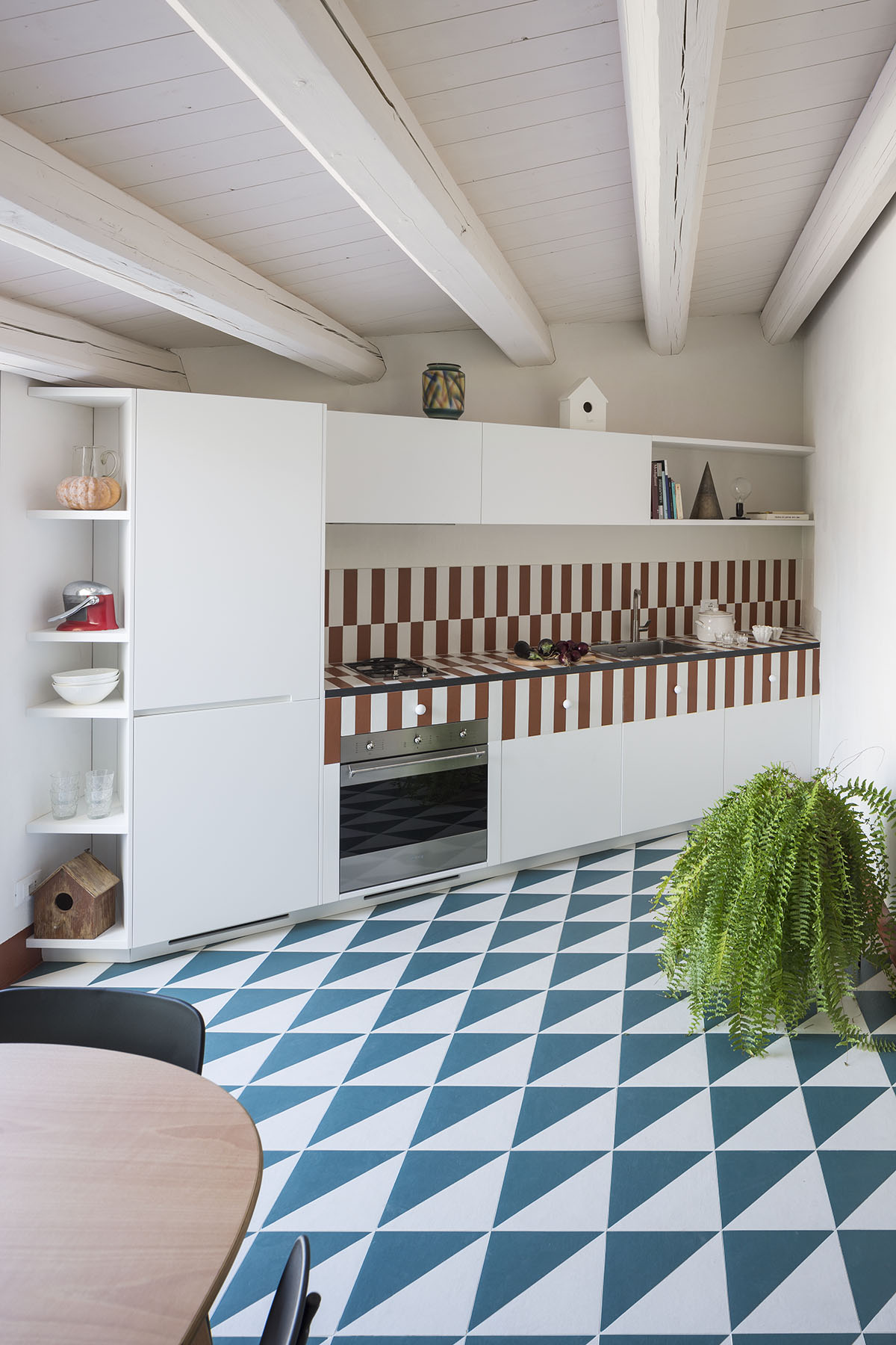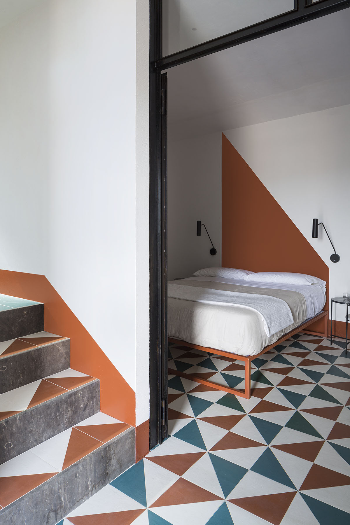 multipattern e colorate geometrie alle pareti. Un effetto caleiodoscopio che restituisce all’interno degli ambienti la vivacità
